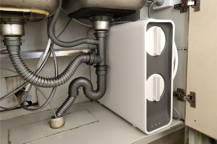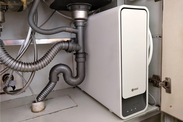 和安装师傅约定好时间到家安装,只需在家里等着就行了。从入户到安装调试完毕,大约使用了1小时左右,这还是由于我家橱柜高度有些不合适,将中间的隔板进行部分拆除,如果安装环境合适的话,大概半小时就能安装完成,这主要得益于352智能净水器的一体化设计,需要进行安装的部件并不多,其实动手能力稍强的用户自己也能轻松安装。