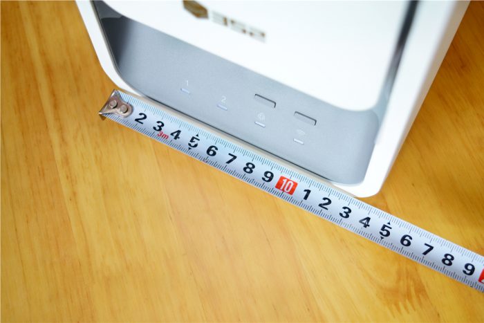 352智能净水器的机身还是很纤薄的,其中机身宽度仅146mm,可以占据更少的橱柜空间,另外机身的长度为445mm,如果是整体橱柜应该没问题,不过如果是像我家一样是定制橱柜的话,就需要稍加注意下了,我家自己打造的橱柜长度就刚刚好。