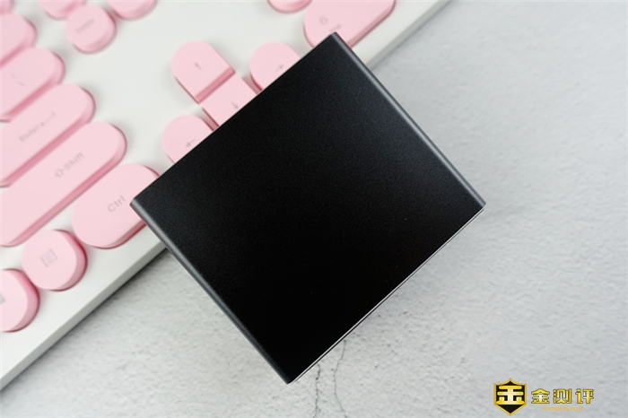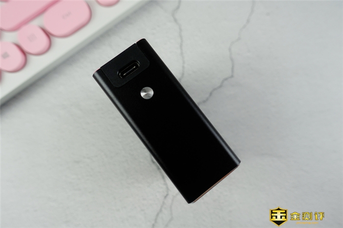 从充电舱的整体上来看,尺寸也不是特别的大,为7.8*2.8*6.8cm,中规中矩的,外壳为磨砂的质感,在颜色方面,共有两种可以选择,分别是秘镜黑、玫瑰金两种颜色,笔者拿到的就是秘镜黑,非常的时尚,也符合当下年轻人的气质。