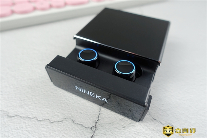 耳机放在充电舱中,充电舱只要通过抽拉式即可以打开,打开后就可以看到两枚耳机,耳机为拿起即可以配对,收纳后就会自动关机充电,有着自动记忆功能,能够自动连接手机,耳机的充电方式为触点式充电,充满电的情况下可以连续使用1个月。