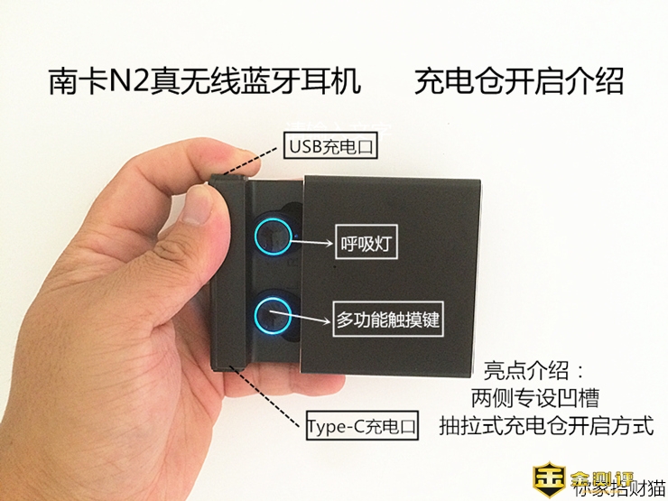 就对一般的真无线蓝牙耳机而言,因为体积尺寸的问题,耳机内置的锂电池容量小,续航能力也不会太差,所以一般都会随机附一个充电仓。市面上真无线蓝牙耳机的充电仓主流机型的容量多在500毫安,但是南卡N2却在此处闪出一只“奇兵”,让招财猫眼前一亮……