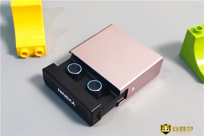 打开充电盒就可以看到我们的南卡N2啦,每次将耳机放入充电盒,耳机外侧的环形指示灯就会亮起,提醒耳机与充电盒连接正常,淡蓝色的指示灯,亮起后还是非常好看的。