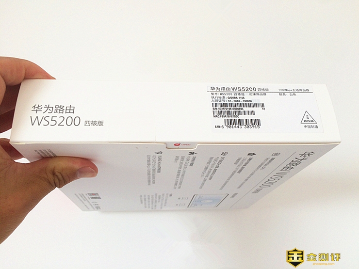 从包装盒的侧面可以看出,路由器采用比较传统的外层侧翻+内层抽拉开启新征程,为了方便用户操作还非常有良心的在开盖接口处印制了专门的红色字体“OPEN”,让招财猫深深的感受到了大品牌生存之道在于细节的处理。路由器型号标示,S/N、MAC等信息的贴纸在右侧,大家可以参考一下。