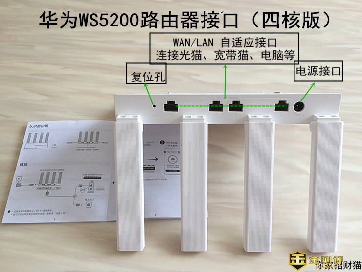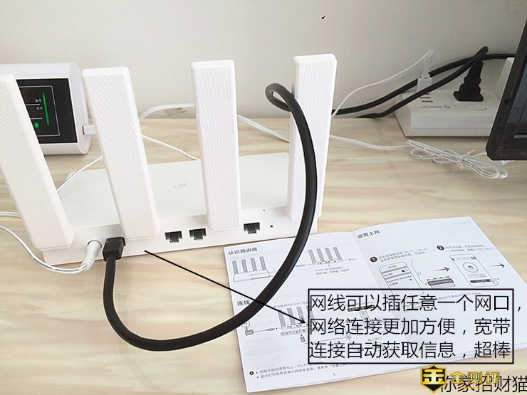 路由器的安装和配网,一直是“迷糊蛋”用户的噩梦,一个是难以分辨WAN和LAN端口,另一个是复杂的设置,现在这个问题全部解决啦!华为WS5200四核版颠覆了以往路由器的配置方式,将配网流程简化到了极致,招财猫这样的小白用起来都十分的方便,按照说明书接上先,咔咔咔的立马就连上网啦!