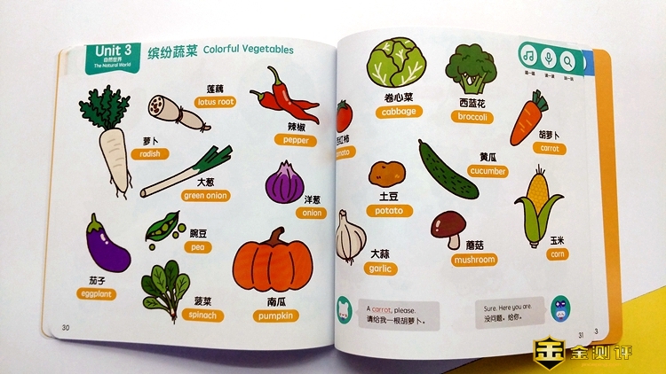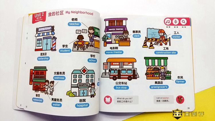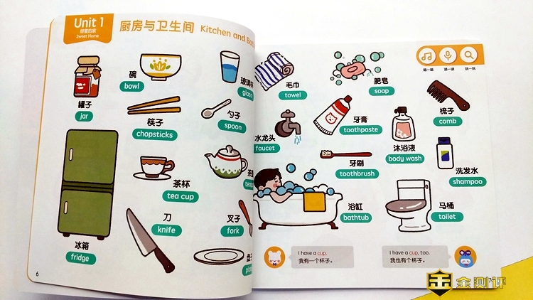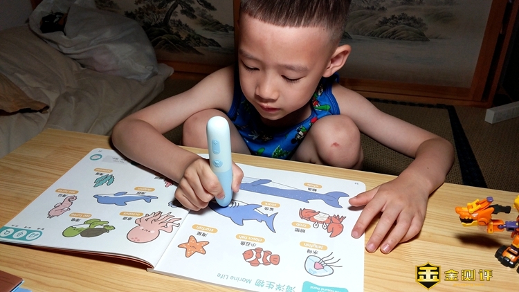 用点读笔点击绘本上的中文、英文、图画,都可以准确的播放出点击的内容,先英语后汉语,儿子在使用时也会不由自主的跟着读上面的内容。它将中、英、画完美的结合,并且对孩子的影响是由内而外的,与我给他报的英文班有很大不同。我以前给孩子报过两个英文班,但效果都不理想,根本提不起孩子的兴趣。但是儿子着实对这里的交通工具等内容很感兴趣,基本上能说出一半的英文单词。在每一页下面有简单的提问对话,我可以根据绘本上不同的内容教孩子对话,这也着实解决了家长刚开始教孩子英语无从下手的尴尬。