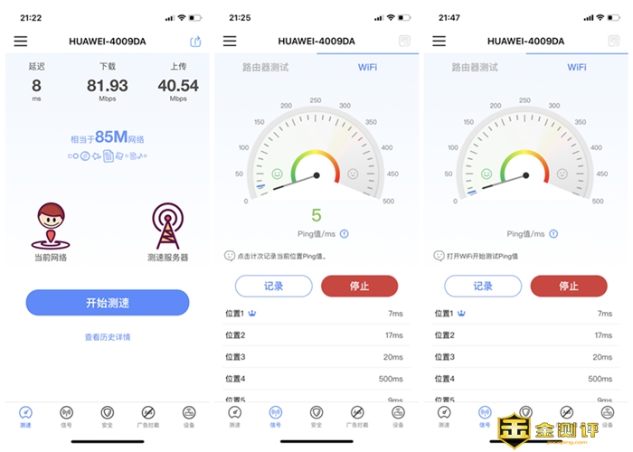 为了应征Wi-Fi的覆盖率和信号强度,笔者先从手机上的Wi-Fi分析仪对房间的每一处进行实测,发现无线信号还是可以的,在主卧位置,无论是2.4G还是5G信号都非常的强,然后走到次卧,因为是隔着一堵墙,不过信号还是满格,此时5G信号就有所减弱了,然后笔者在走到书房和厕所,此时2.4G有所减弱,但是5G信号基本上就只剩1格了,然后笔者继续走,走到客厅和阳台位置,此时的2.4G还有两格信号,但是5G已经收不到信号了,通过实测笔者发现,确实覆盖范围还是比较广的,基本上能够做到全覆盖。