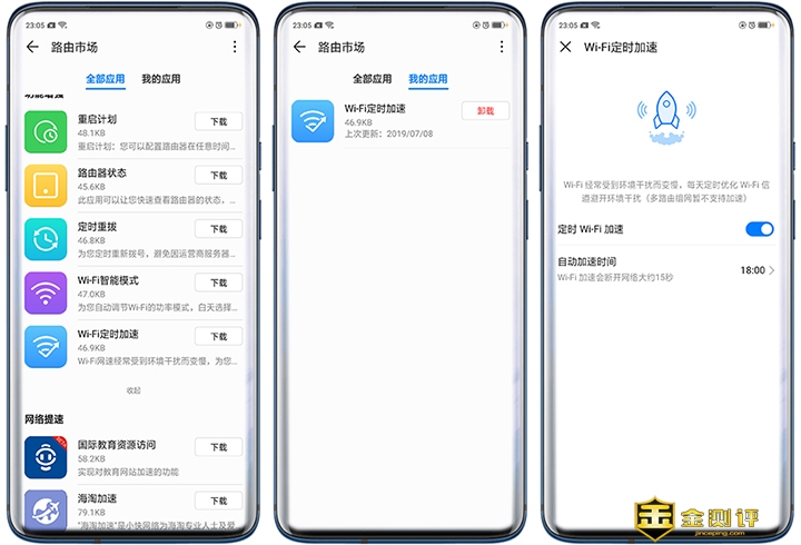 无插件不方便,WiFi网速经常受到环境干扰而变慢,每次都还得手动进行网速优化,非常麻烦,这次在路由市场中增加了一个WiFi定时加速功能,可以设置自动加速时间,再也不必去手动优化网速了。