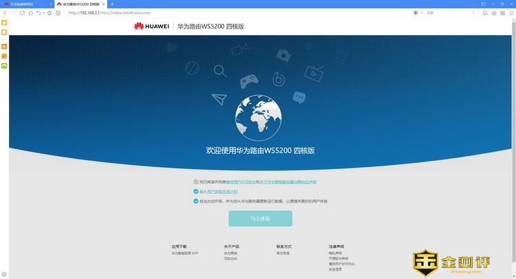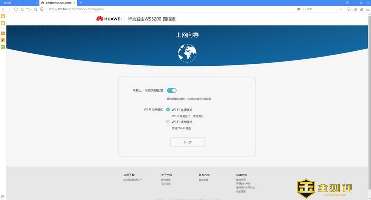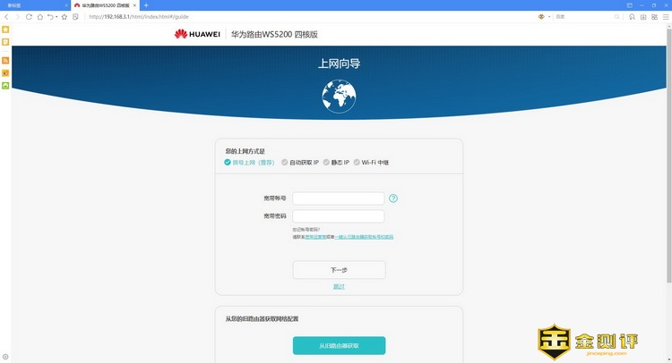 先将连接的网线都断掉,然后重置了华为路由WS5200四核版,再进入管理页面,就是正常的初始化配置页面了。主要是需要先关了路由器的智联功能,不然只要接到了荣耀路由Pro出来的网线,就自动组网了。