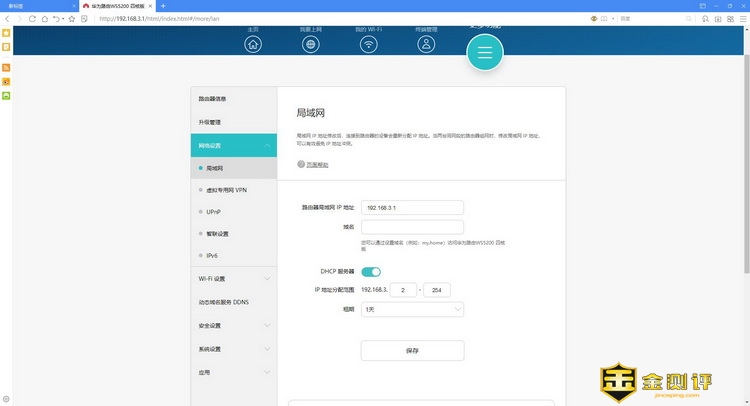 局域网里可以设置路由的IP地址和域名,还能设定DHCP池的范围和DHCP的开关。