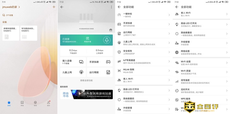 我分四个点测试WIFI信号,第一个是在路由器旁,最靠近的,所以信号肯定是最好。第二个厨房的边角与客厅路由隔着一堵电视墙,直线距离也比较近,所以信号也较好。第三个阳台,与客厅距离接近直线,中间隔着2扇落地窗,没有强,所以信号也还不错的。最后一个是我的卧室,算是距离客厅最远的还隔着2堵墙,没华为路由WS5200四核版前,关门笔记本经常没信号,手机信号也会衰减不好,如今信号虽然也比前面衰减了不少,但是信号还不错的说。