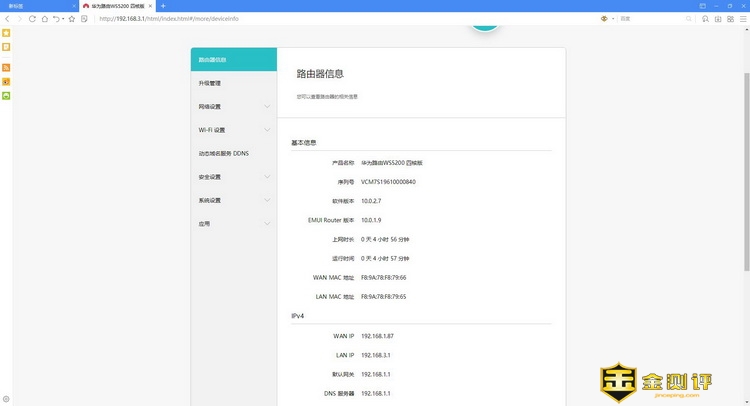 将华为路由WS5200四核版摆放在了客厅后,在房间各个地方的WIFI信号就都覆盖完整了,虽然有些地方的WIFI信号相对较弱一些,但是整体基本不影响使用,而且这么多天运行华为路由WS5200四核版,没关机,没重启,一直都非常稳定,机身的发热量也不大。华为路由WS5200四核版的安装非常方便,稳定性好,WIFI覆盖范围较广,网口盲插这些都让我相当满意,就是网口少了些,同时没有USB接口,系统内的功能也比较少,希望未来能增加一些可选功能让用户自己选择,这样可玩性会更好一些。以华为路由WS5200四核版的249价格来说,这样的表现让我相当的满意。