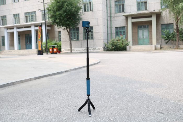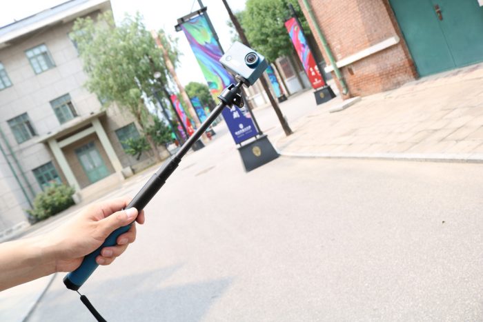自拍杆供分为6节,伸长为70cm,缩短为19cm,顺时针想做宁可锁死自拍杆,逆时针则缩短自拍杆。搭配八爪三角支架进行底部的固定,如安装相机三脚架瞬间感觉支架太长了。瞬间感觉有种头重脚轻,生怕来阵风给吹倒,小编还是建议自拍杆底部用机身一体三角支架。