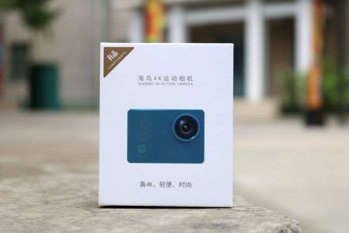 海鸟4K运动相机外包装盒正面显示了主机的颜色,这也方便用户在购买时能够直接看到每款产品的真实颜色。