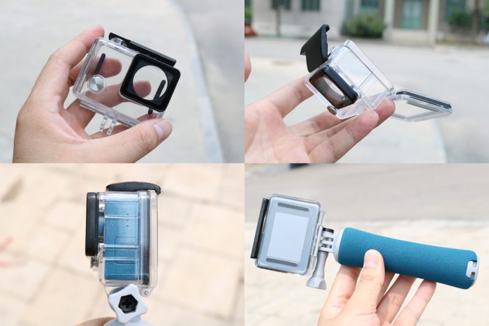 作为运动相机怎么能少了配件,小编从网上购买了本家的防水套装以及自拍杆。