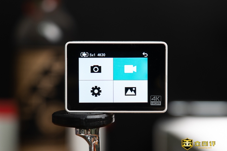海鸟4K运动相机带有一块2英寸的IPS高清触摸屏,除模式选择和拍摄/停止两个物理按键外,通过触摸屏还能进行更为详细的参数设置和功能选择。
