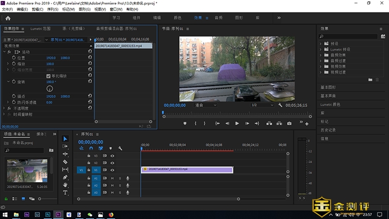 4、倒置安装后,虽然屏幕显示为常规状态,但当通过PC进行视频编辑时,导入的视频文件依旧是颠倒的,即便进行了视频翻转,水印的位置也是相反的;