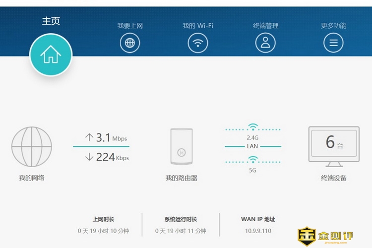 终端管理界面设计得井然有序而且非常直观,当前上传下载的速度、联网的终端设备数量等主要情况可以一目了然。普通用户除了WiFi密码需要自定义外,其他的设置基本上选择默认的即可;在终端界面下接入有线、无线、2.4GHz、5GHZ,甚至是离线设备,都加以细分。