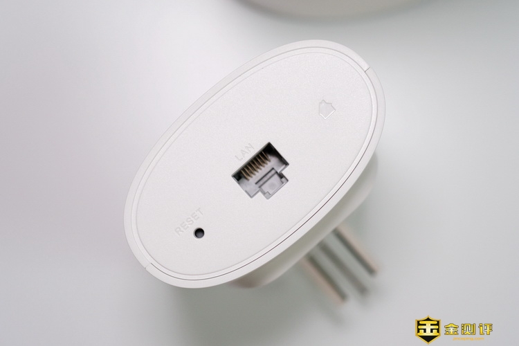 子路由在机身的顶部也设有复位孔和一个千兆的网络接口,这个接口还是很有存在的必要,像我房间里的台式电脑没有无线网卡,这时候就可以通过网线有线接入子路由上网了。