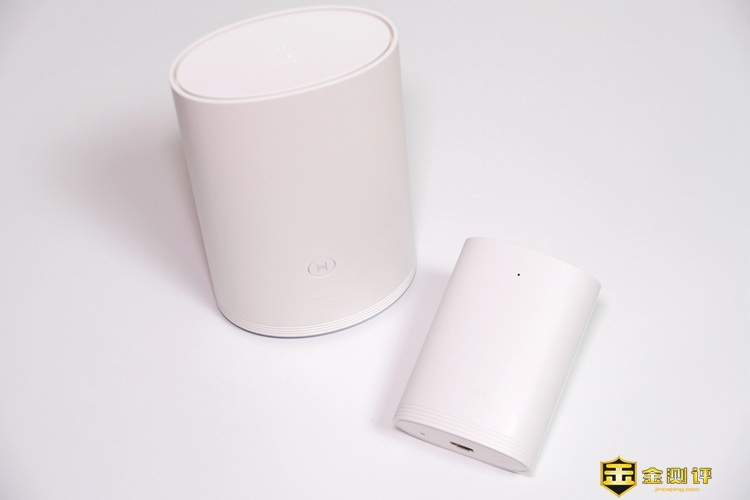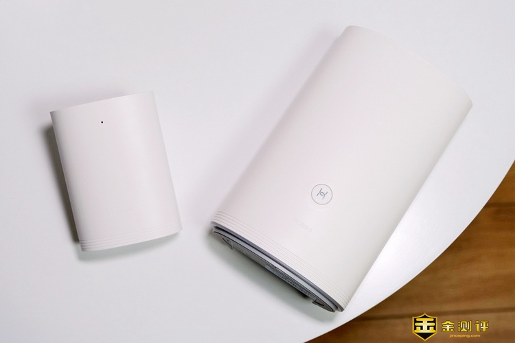 和传统的无线路由器不太一样的是华为路由Q2 Pro的天线为内置设计,这样也就更有利于摆放,母路由的机身尺寸为112.0 mm x 73.3 mm x 183.5 mm ,而子路由则是75.0 mm x 46.3 mm x 103.0 mm,可以说都是比较迷你的,再加上外在颜值不错,摆在家居环境里面也可以成为一道靓丽的风景线。