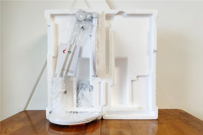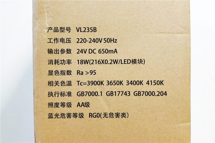 打开包装首先看到的是防护泡沫,泡沫内部设计有十分贴合的凹槽,我们的孩视宝VL235B就嵌在凹槽内,因为贴合非常紧密,台灯完全没有晃动感,如此也能避免运输损伤问题,另外,孩视宝VL235B主要部件外还有塑料防护,进一步保证产品安全抵达“战场”。