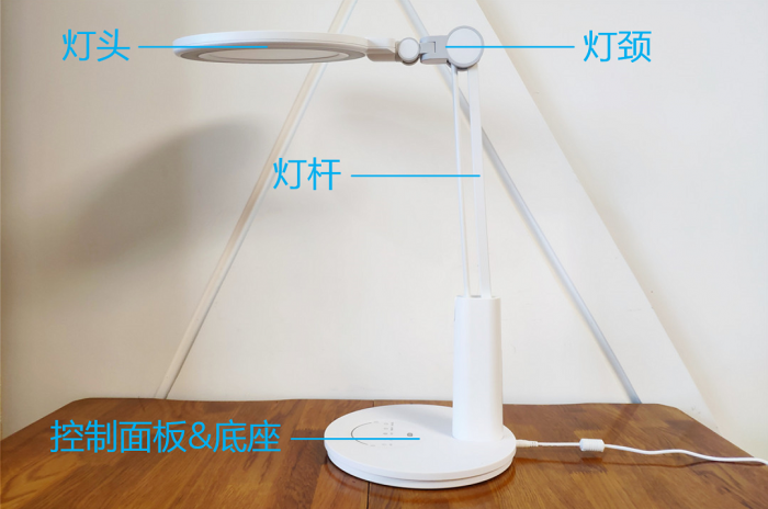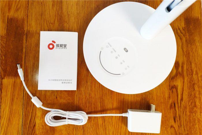 包装主要的使命是保护产品,既然已经完成使命,就不再过多介绍啦,主要来看看产品吧,孩视宝VL235B出厂即以组装完毕,所以无需安装,插上电源适配器直接就能使用了;台灯整体采用白色设计,看上去就很清爽干净,而且档次感十足,台灯由上至下分为以下几个区域:灯头、灯颈、灯杆、控制面板和底座,下面我们详细介绍。