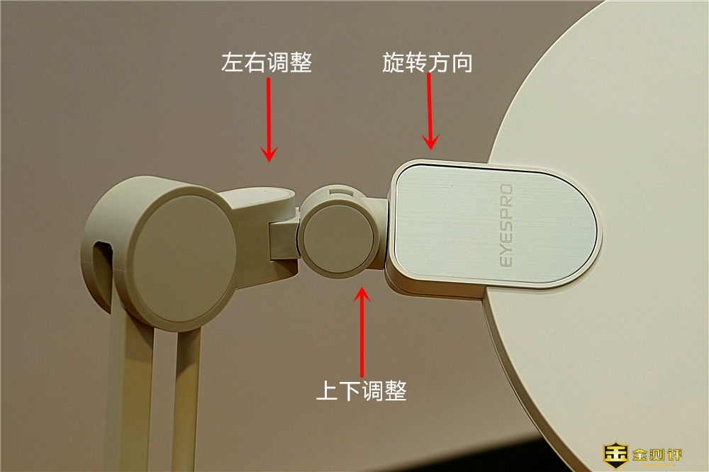 灯头部分有孩视宝厂家英文LOG(EYESPRO),可以做上下左右旋转等多方向的调整。