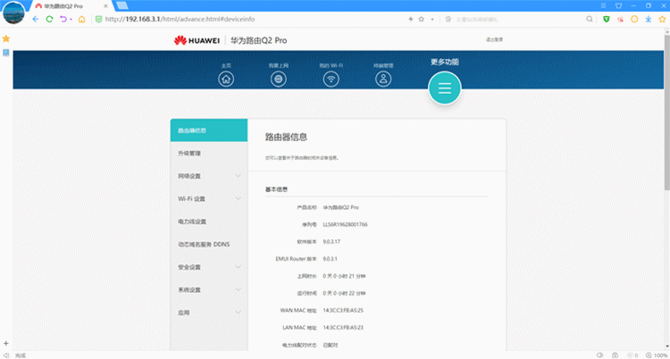 路由器信息:可以查看当前路由器的相关设备信息;
