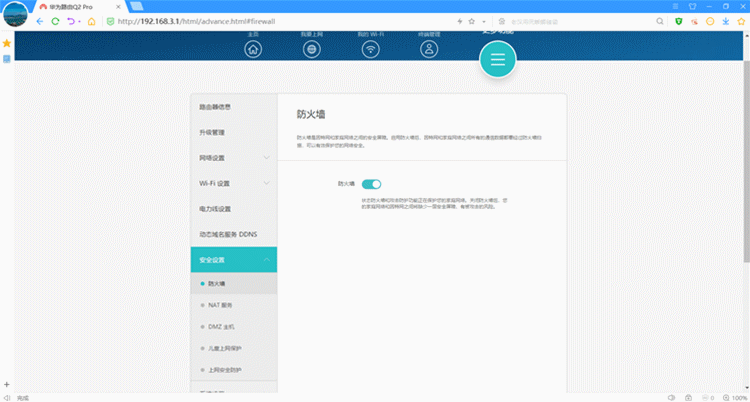 防火墙:开启后,可以有效的防止互联网的恶意攻击,保护家庭网络;