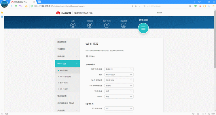 WIFI高级:通过2.4GWI-FI和5GWI-FI的个性化配置,让你的各种终端获得最佳的无线体验;