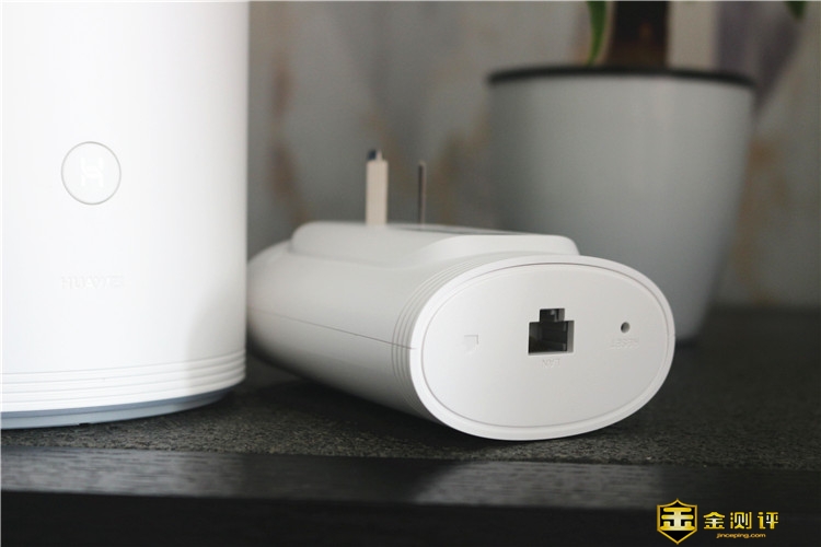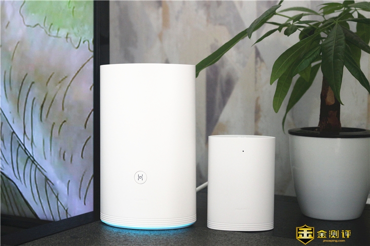 母路由稍大一些,正面刻印着“HUAWEI”logo,上面的圆形标志是多功能“HI”键。椭圆形的底部可以稳稳地置于电视机旁或者书桌上。这款路由器给人最大的印象是整体感强,没有外置天线,现在的路由器它传输信号的优劣已经不依赖于外置天线了,而且指望外置天线实现大户型的网络全覆盖显然不可能。