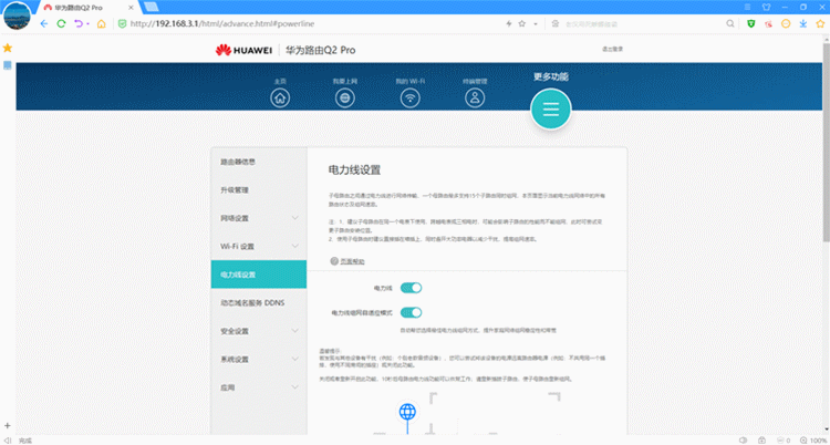 电力线设置:子母路由器之间通过电力线进行网络传输,在子母列表中可以查看当前组网情况。