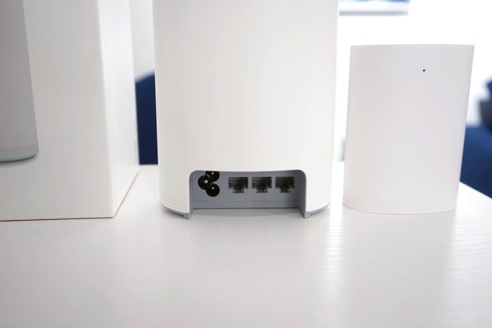 华为路由Q2 Pro子路由设计风格与母路由相似,小机身采用了曲面椭圆设计,背部插头位置稍有突起形成了一个小平面,能更好的贴合墙面,避免弧型机身在插座上时不够稳固。底部还有一个LAN接口,以及一个重置孔,方便连接上网设备,比如电脑,网络存储等产品!