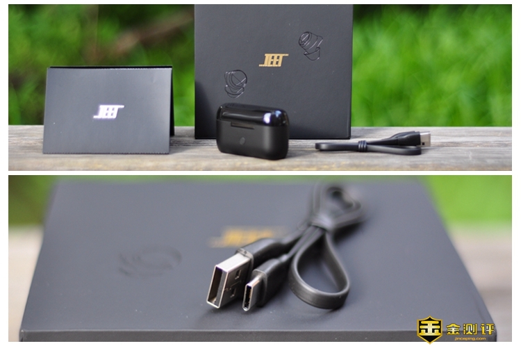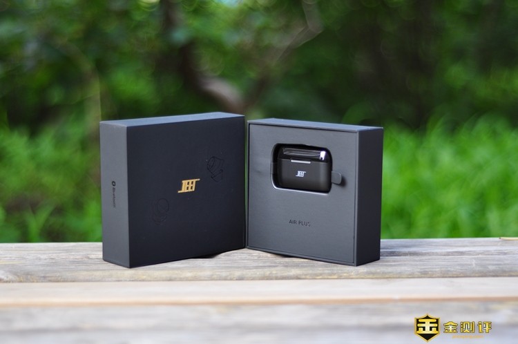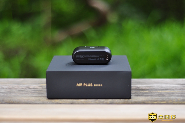 ▼JEET AIR PLUS采用了黑色方盒子包装,盒子表面使用了立体凹凸的纹理设计,第一印象就是沉稳大方;正面仅保留烫金的JEET商标一枚,背面则是产品的基本信息,突出标明了这款耳机的核心配置及产品特色,可能是由于测评产品的原因,底部空白了两处条码框。从制造商可以看出,这款耳机由深圳小捷科技授权制造,内部型号为JEET T02。