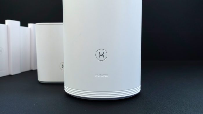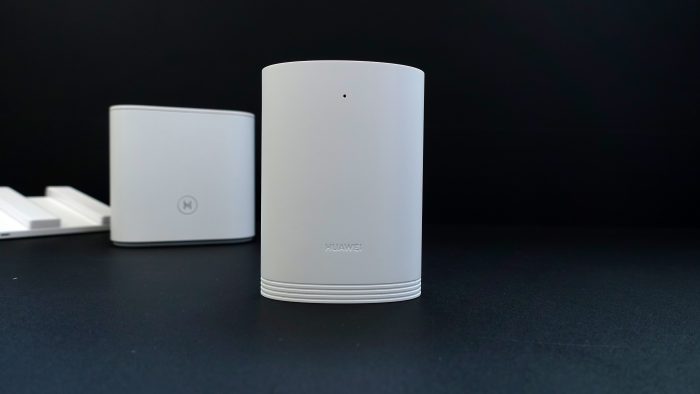 在子路由的顶部也有一朵暗刻的华为菊花LOGO和一圈凹刻的环状装饰设计。