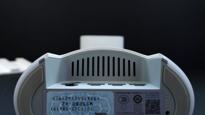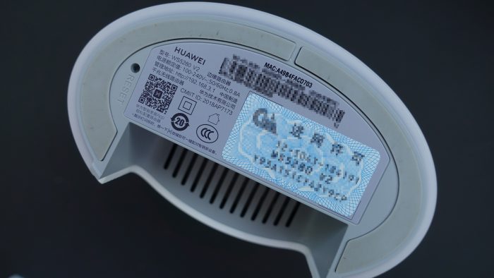接下来再来仔细看一下华为路由Q2 Pro的细节设计,华为路由Q2 Pro母路由的底部除了接口设计外,还有许多散热孔设计,整个路由也只有这几个散热孔,不知道热量能不能及时散出去。
