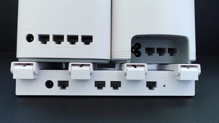 在接口方面,华为路由WS5200和荣耀路由Pro2都有四个千兆网口,但华为路由Q2 Pro只有三个千兆网口,这三款路由器的网口不区分WAN口和LAN口,支持全盲插。华为路由Q2 Pro的电源适配器采用了内置方案,在电源接口上与其他两款路由器也有所不同。