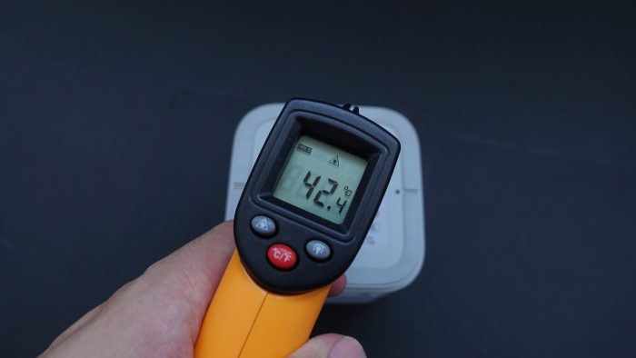 而正面温度也达到了41.5℃,算是这三款路由器中发热比较严重的路由器了。