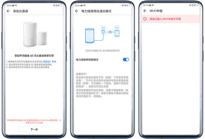 这几天华为路由Q2 Pro经过升级以后,居然新增了两个新功能,一个是添加从路由,另一个是电力线组网自适应模式,这两个功能都可以把你手中的老款华为路由Q2利用起来,一种是利用从路由功能可以组建一个类分布式组网环境,另一种是把手中的华为路由Q2当做一个子路由来使用。而在华为路由Q2 Pro并没又WiFi中继这个功能,个人觉得这个功能还是蛮有用的,这样可以通过利用路由器把收到的WIFI信号,再发射出去,从而实现增大无线信号的覆盖范围。
