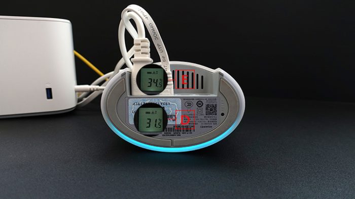 再来测一下发热情况,在测试发热之前,三款路由器大概运行了48小时,散热和发热相对稳定,如图所示,华为路由Q2 Pro的A点温度为35.3℃,B点温度为38.8℃,C点温度为39.9℃。