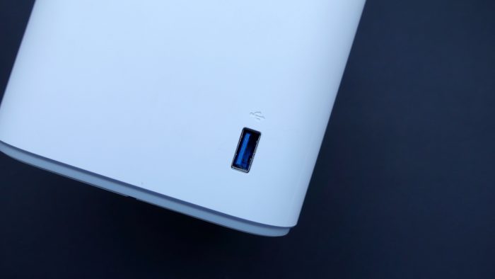 除了以上网口和电源接口外,在荣耀路由Pro还有一个USB3.1接口,从而可以外接一个硬盘实现网络资源共享。