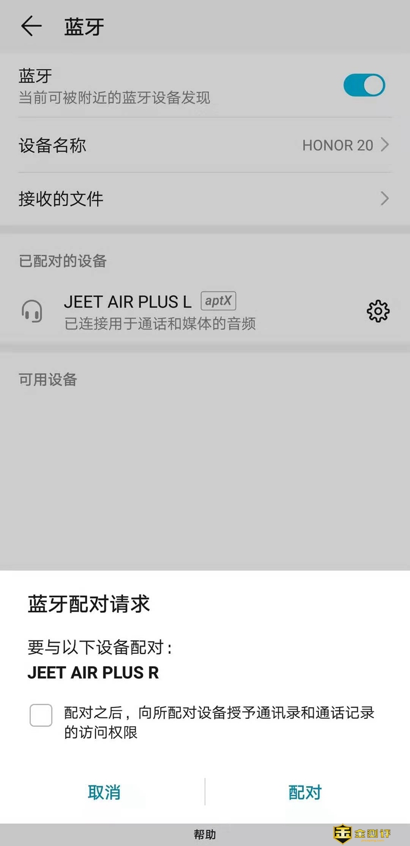 可以搜索到JEET AIR PLUS L和JEET AIR PLUS R两个独立的蓝牙设备,所以JEET AIR PLUS左右均可以独立连接设备单独使用…随意连接其中一个,系统会自动弹出配对另外一只…