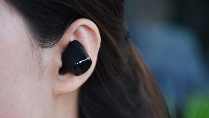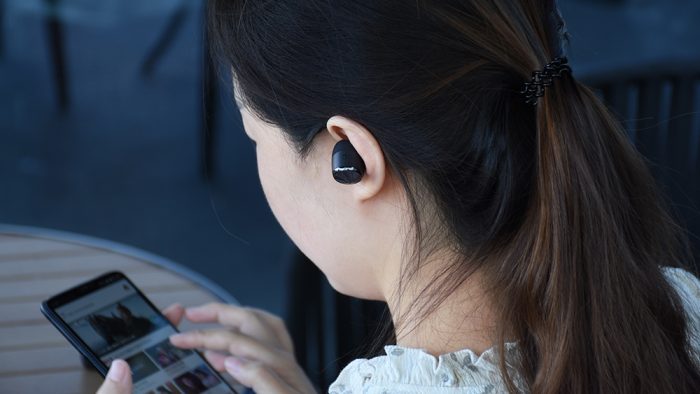 AIR PLUS在结构设计上充分考虑到了人体工程学设计,倾斜的耳塞部分可以顺势深入耳道,耳机内侧触点部分与耳屏相抵。整体重量较轻能够完全贴合耳朵,不易脱落,且长时间佩戴不会对耳朵造成较大的压力,耳帽部分柔软舒适,不会出现耳道肿胀的现象。在体验的这段时间,我也让身边几位朋友分别试戴的AIR PLUS蓝牙耳机,不同耳道尺寸更换对应的耳帽后基本可以满足正常佩戴需求。