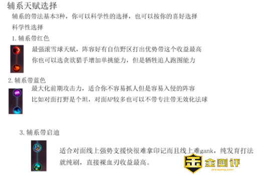 千珏天赋一般选择辅系天赋,具体的天赋选择为辅系带红色、辅系带蓝色、辅系带启迪三种,具体的天赋选择可以参考下面的图片。