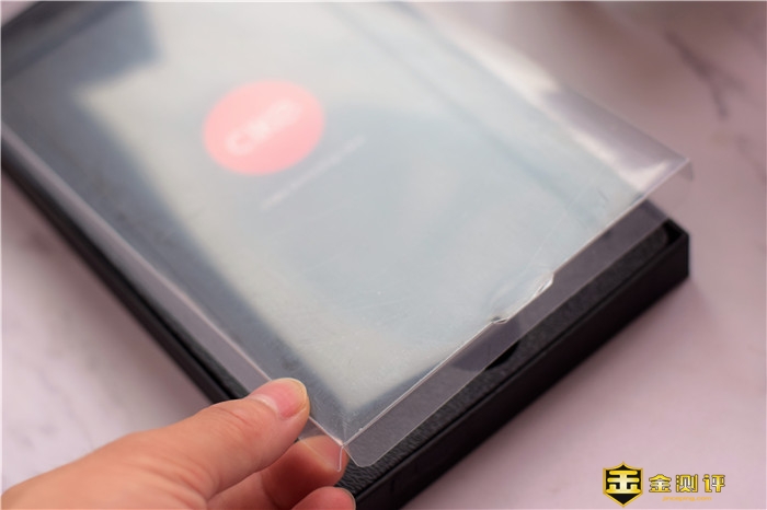 包装采用抽拉式的打开方式,拉出里面的包装之后就可以看到一个透明的塑料壳下面有一张黑色的纸质卡片。将塑料壳、纸质卡片拿掉,就可以直接看到保护套了。