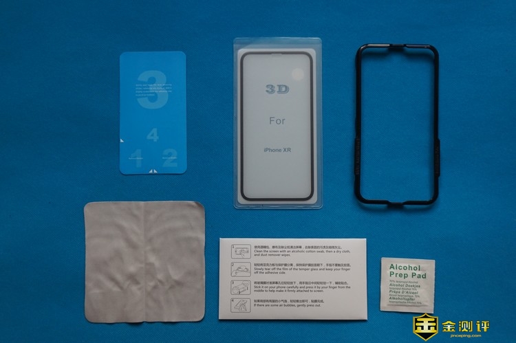 CIKE小红甲全屏覆盖钢化膜的配件非常丰富,除了主品钢化膜以外,厂家还附带了湿棉纸,擦拭布,除尘贴,并且还附送了贴膜神器。