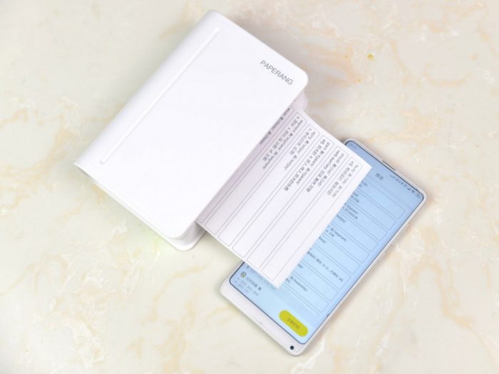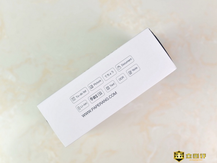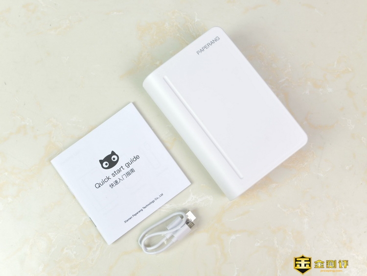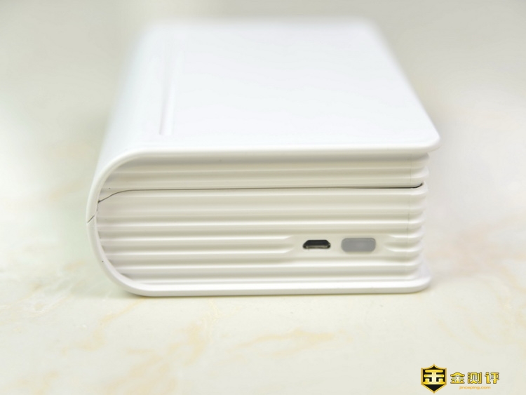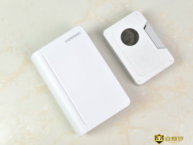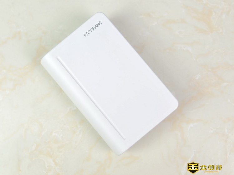 以前的喵喵机是拍立得相机的造型,条条机是磁带的造型,而喵喵机MAX打印机则是书本的造型,乍一看完全看不出这是一台打印机,外观相当的精致。左上角PAPERANG的品牌Logo,机身外壳采用白色的速率材质,三围是150*100*45mm,重量是480g,如果对比以前的喵喵机,那重量是重了一些,但是如果对比便携打印机,那是轻了很多。