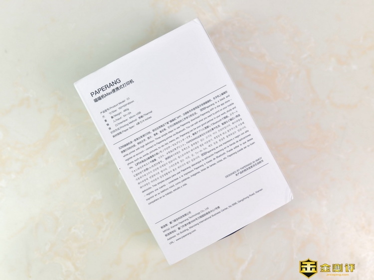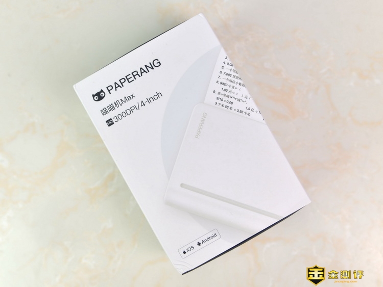 喵喵机MAX打印机的包装盒还是挺精致的,包装盒正面左上角是喵喵机的品牌Logo和信号,并且标注了主要的参数。左下方说明了支持IOS和安卓系统,机身中间则是喵喵机MAX打印机的实物图和打印效果图。包装盒的背面介绍了产品的规格参数,以及功能特点,并标注了厂家的相关信息。