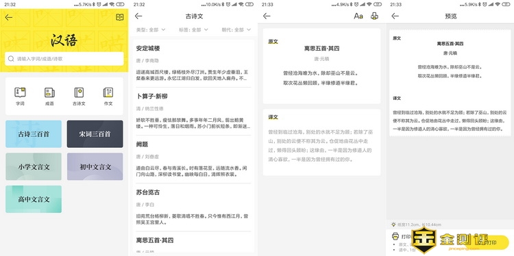 此外还有汉语的学习功能,里面有非常多的唐诗宋词,还有小学、中学、高中的文言文,此外还有字词、成语、作文的内容,用来学习再合适不过了。