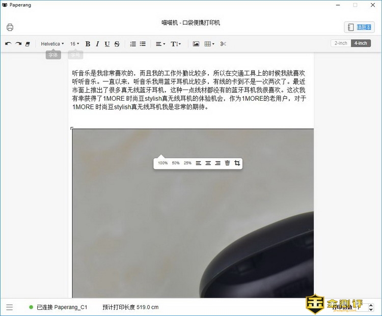 编辑纸条是完全自定义内容的功能,可以添加文本,表格,图片,表情,主题(我选的主题是四个边角的纹理),二维码(输入内容后自动生成的),涂鸦等,完全由自己掌握,可以调整大小和角度,还能设置字体和字号,非常自由。其中我还加入了一张之前用手机拍摄的照片,在预览的时候效果还不错,打印的时候还能选择图文和纯文本,还能控制浓度。