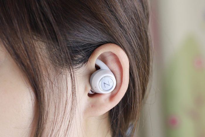 硅胶材质的耳帽和光滑的耳机外壳让南卡N1S的佩戴舒适感很棒,耳机入耳部分与外耳道有一定斜角,比较贴合耳壁,让耳机佩戴更加稳固。